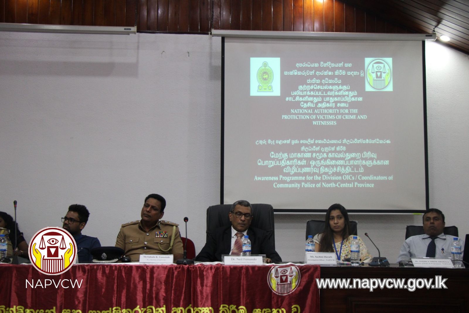 උතුරු මැද පළාතේ ප්රජා පොලිස් කොට්ඨාශභාර නිලධාරීන්/සම්බන්ධීකරණ නිලධාරීන් දැනුවත් කිරීම සහ සංවේදනය කිරීමේ වැඩසටහන